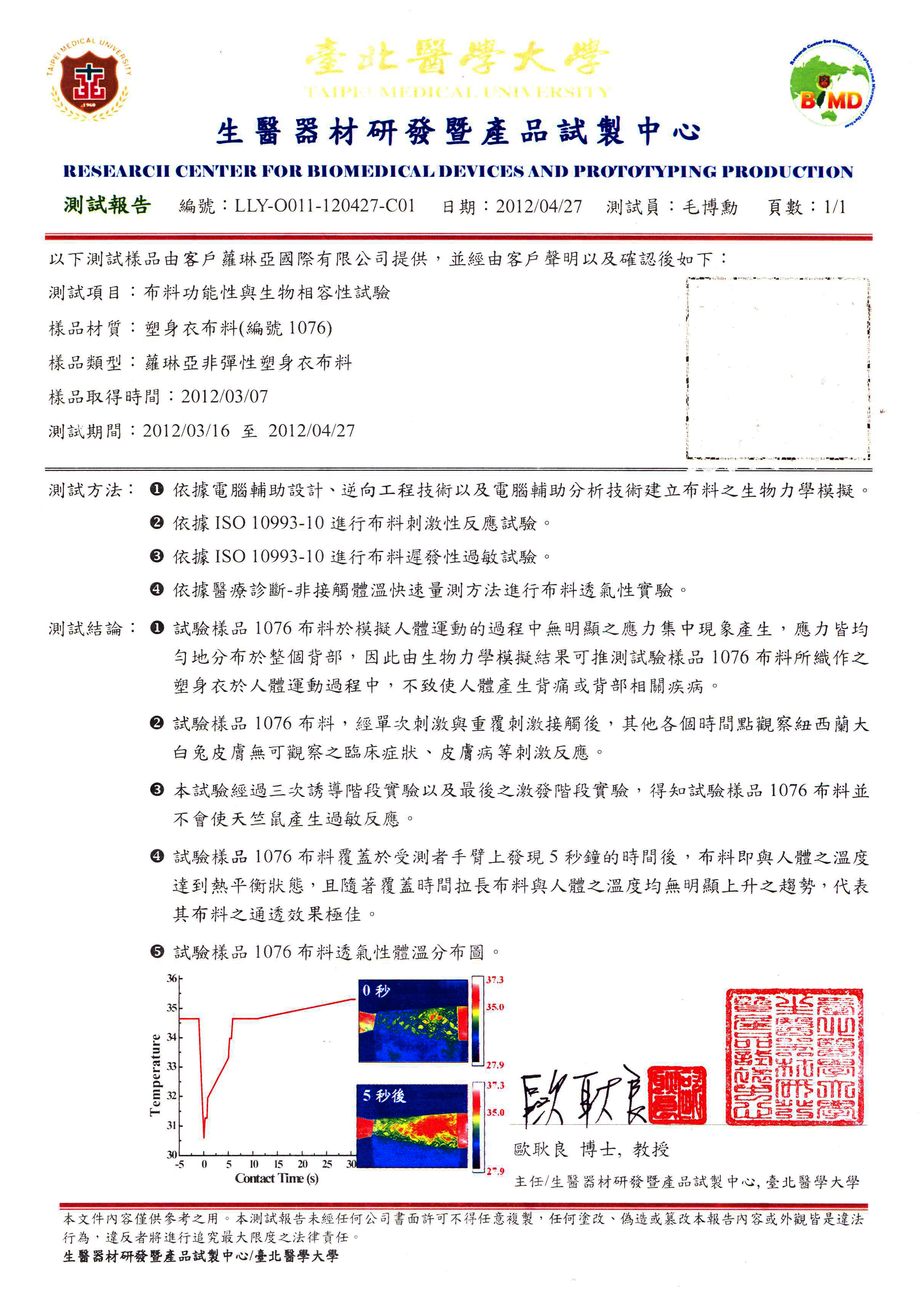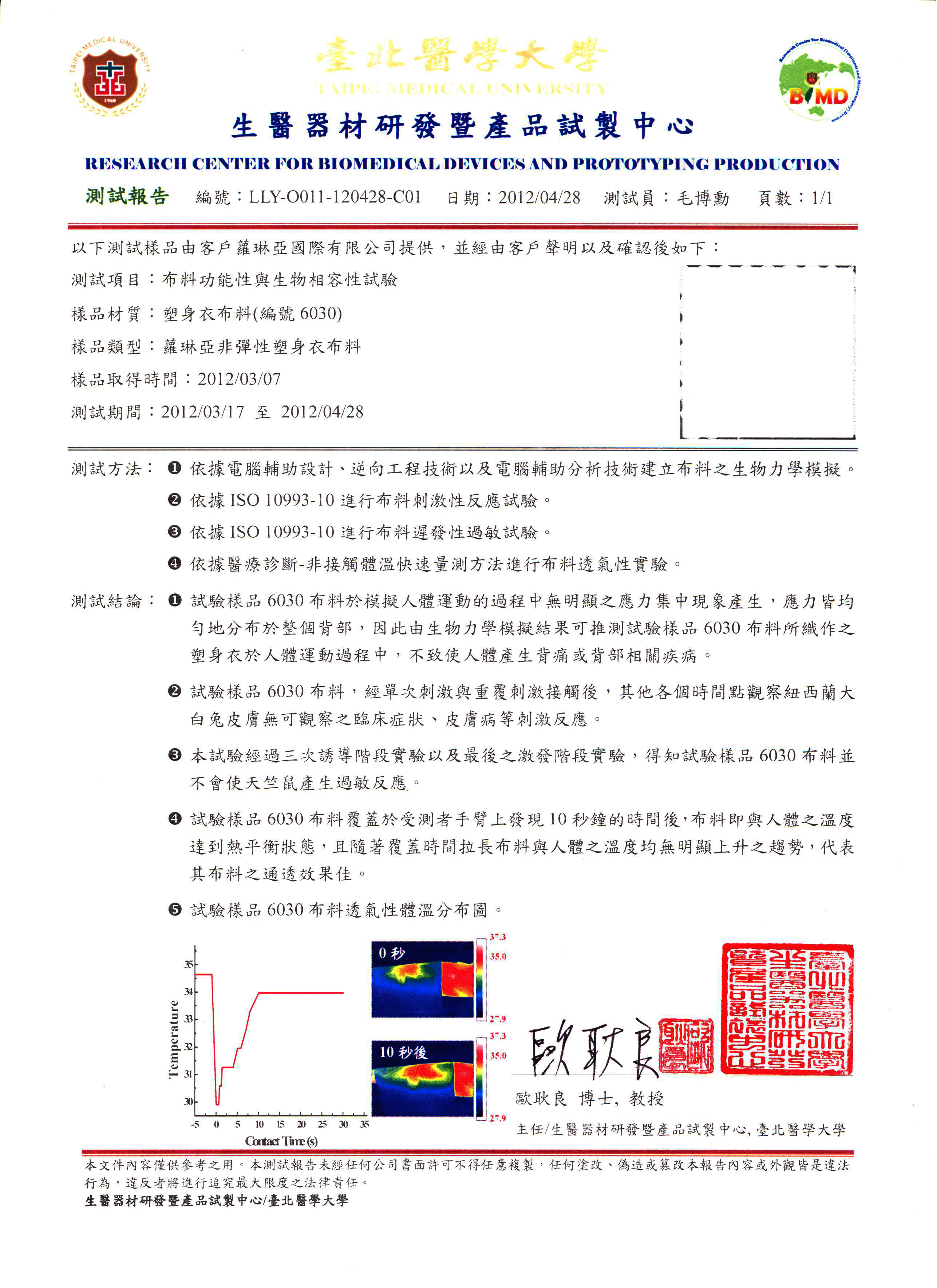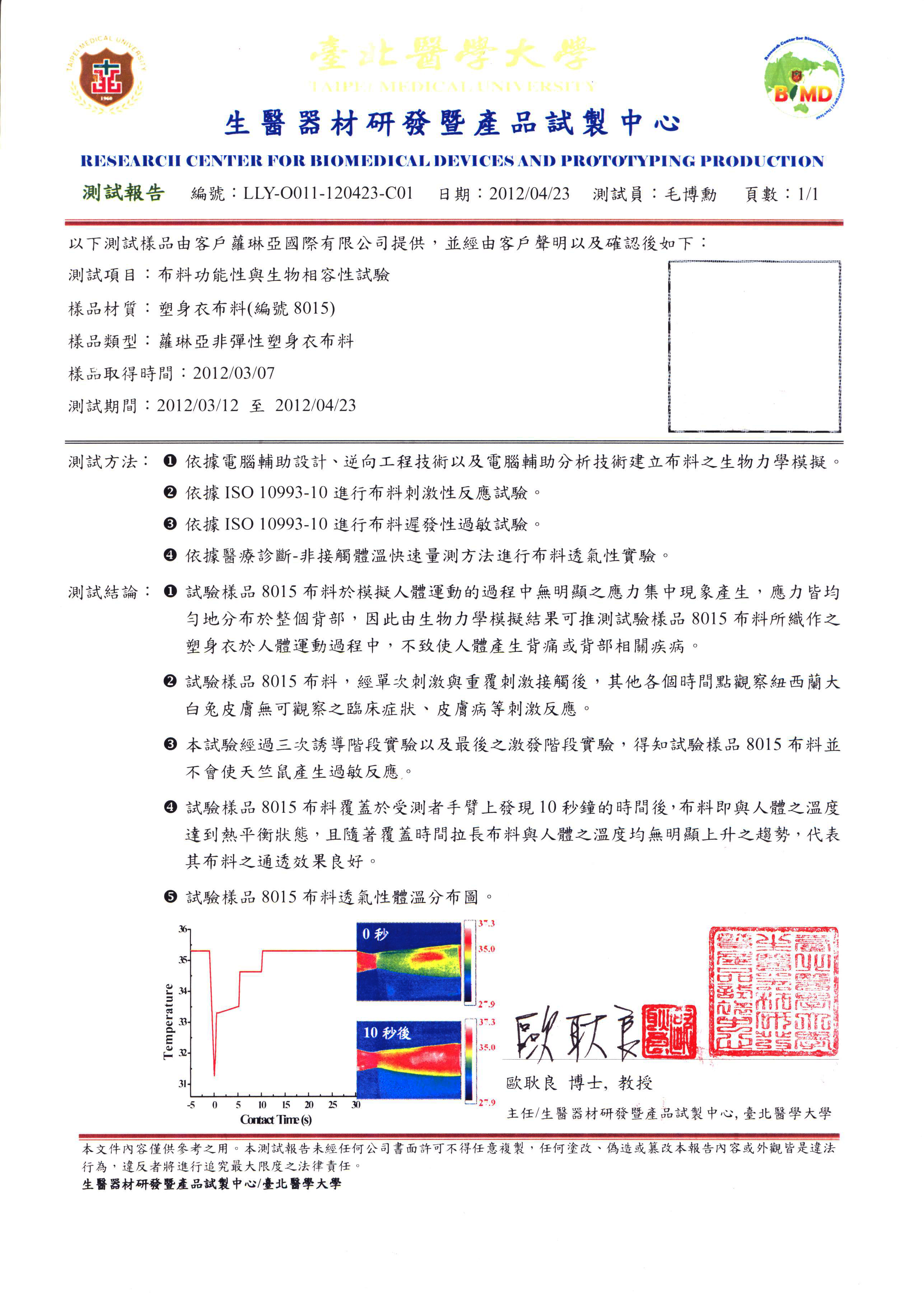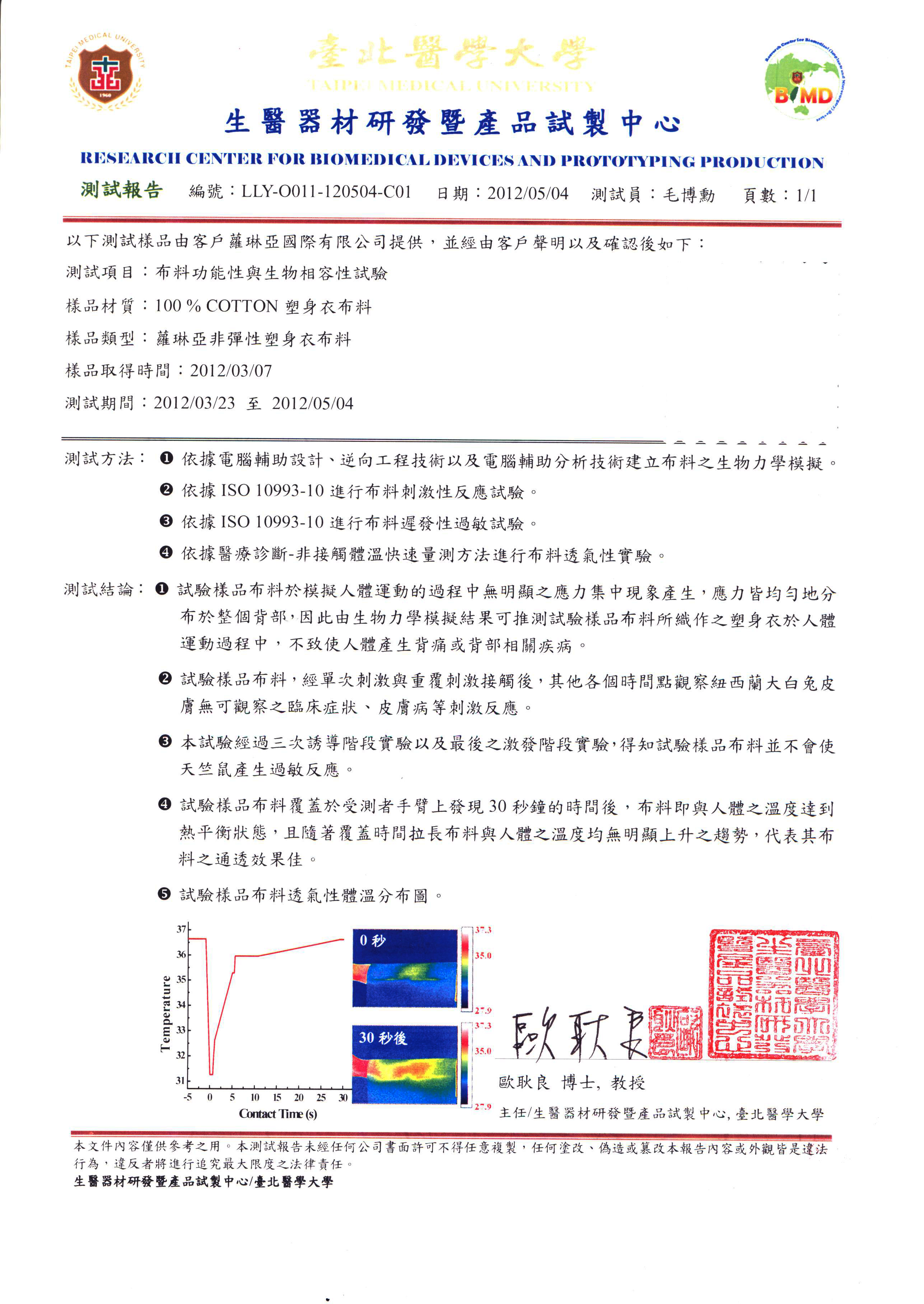 經過數年的研發選材與布料測試,以「雕塑效果」、「避免皮膚敏感紅腫」、「適合長期穿著」為主軸,捨棄一般彈性布料,開創出頂級的「無感纖型布料」,經台北醫學大學-生醫器材暨產品測試中心檢測結果顯示,不會造成肌膚敏感紅腫的現象,適合作為「貼身衣著」使用的材質。