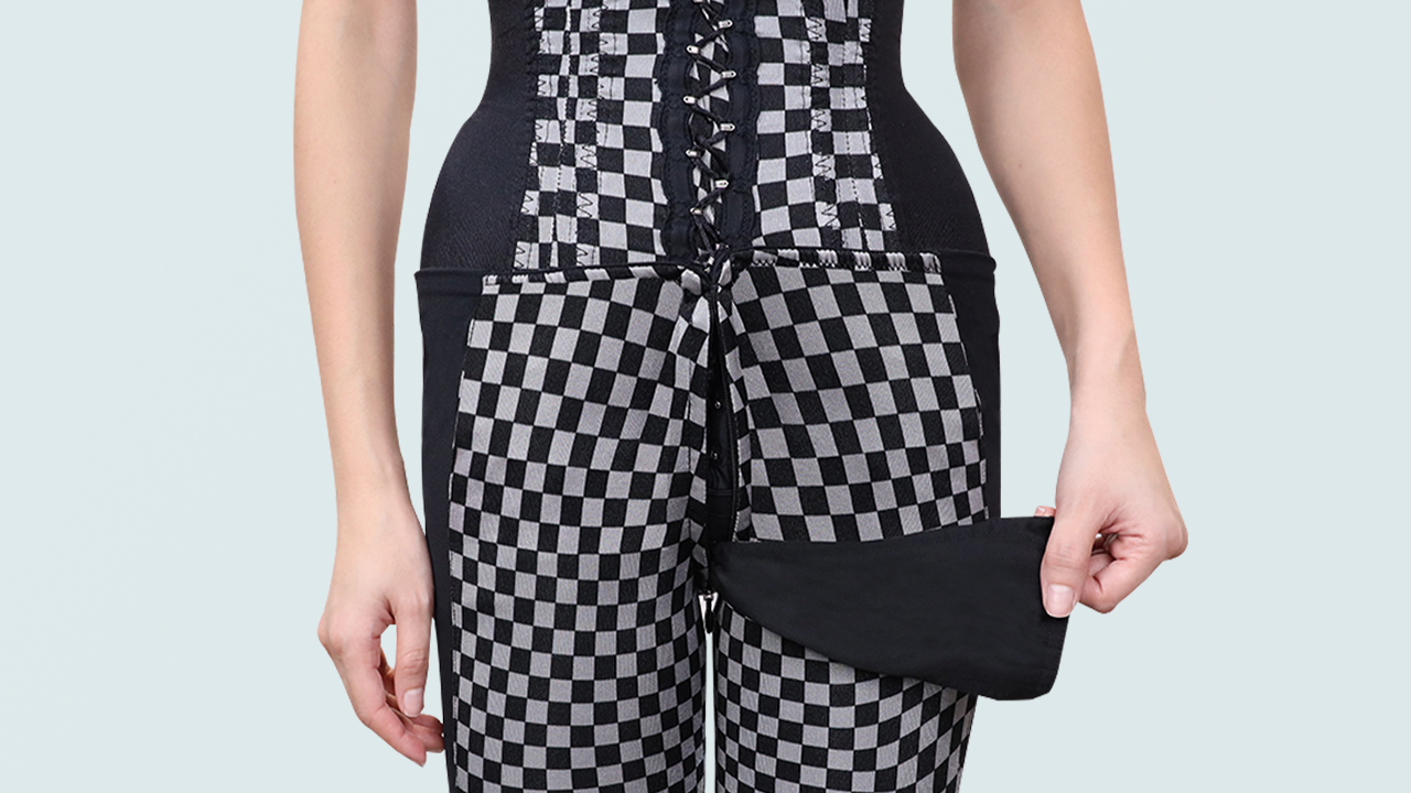 一體成型塑身衣結合拉鍊設計,如廁時無需整件穿脫,只需拉開拉鍊即可。拉鍊內層還有貼心的襯布設計,可以取代內褲,生理期來時可以放置衛生棉與護墊,潔淨衛生、呵護私密處,讓雕塑效果不間斷。